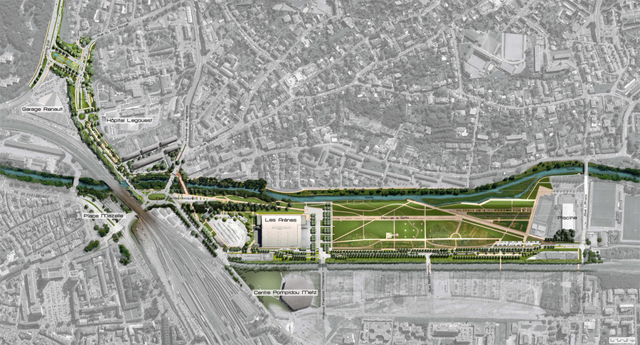 - Composer avec le caractère fort du paysage, notamment avec le Parc et les bords de la Seille qui est l’élément qui qualifie et identifie aujourd’hui le quartier.