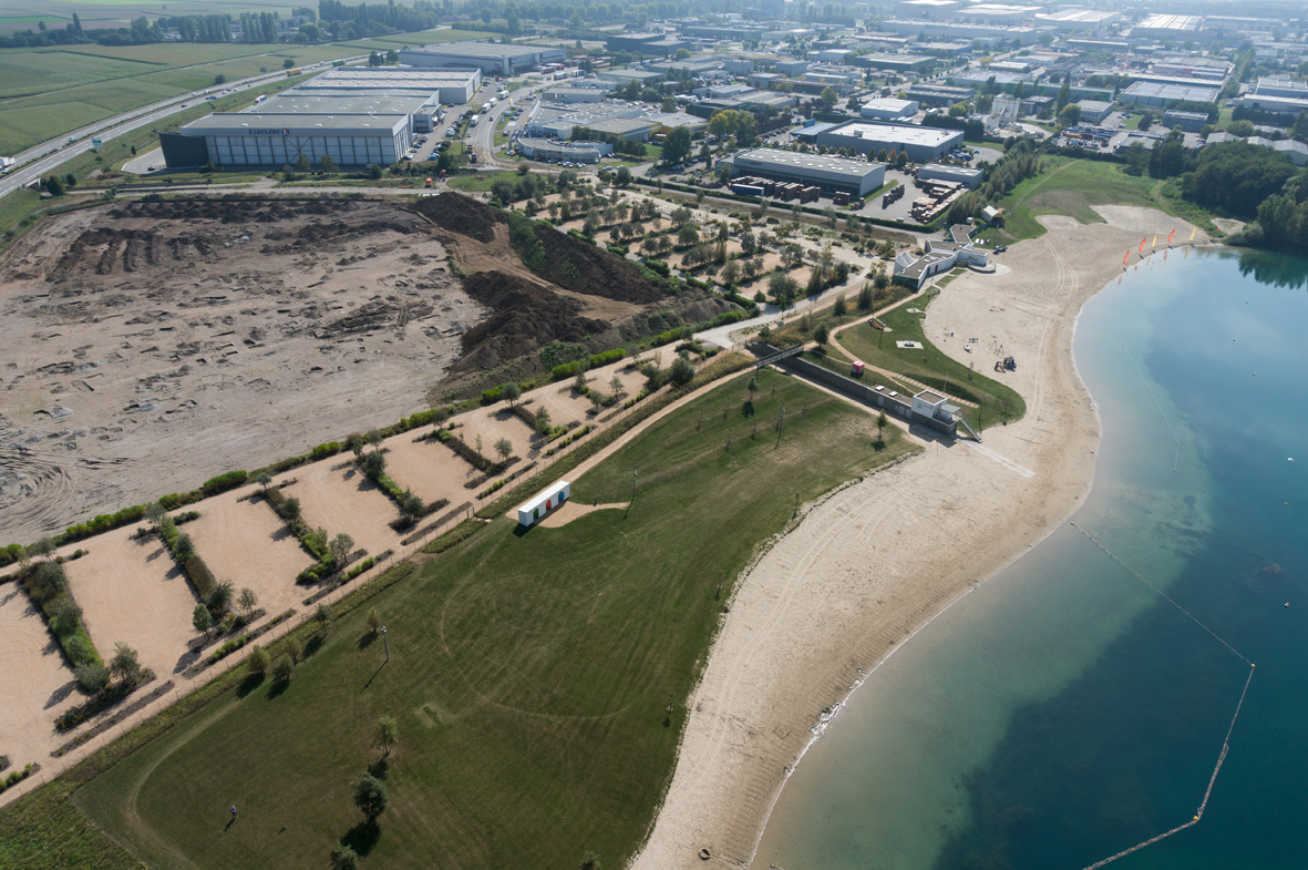 Il s’agit de gérer dans un premier temps les rapports extérieurs (axes de circulation périphériques, zone d’activités) avec l’intérieur (base de loisirs) et inversement.