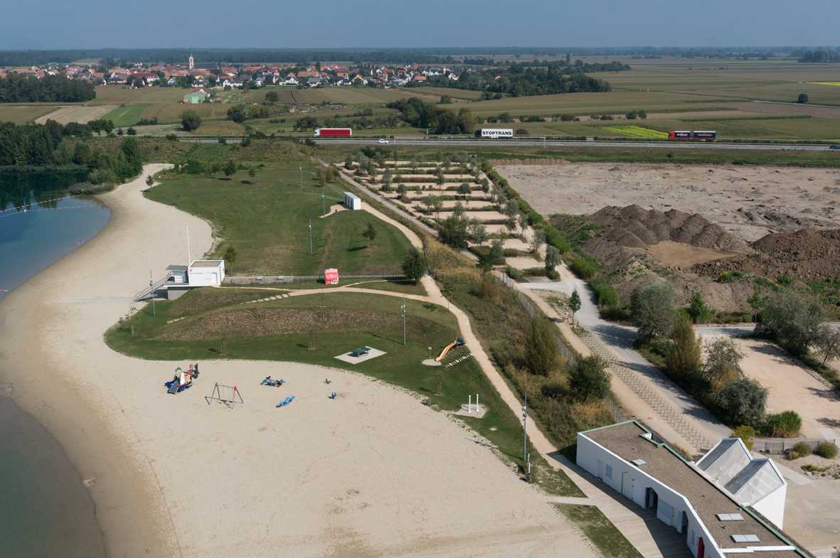 Le projet doit s’inscrire dans une démarche paysagère de qualité. L’objectif est de prendre en compte les différentes entités qui définissent son périmètre, à savoir au Nord l’A35, à l’Ouest la RN83 et au Sud-Est la zone d’activités. L’ambition est de réaliser une base de loisirs propre à Colmar Houssen inscrite dans un site nourrit de ses particularités, un lieu ludique, attractif, pétillant de vie en été et sobre en hiver.