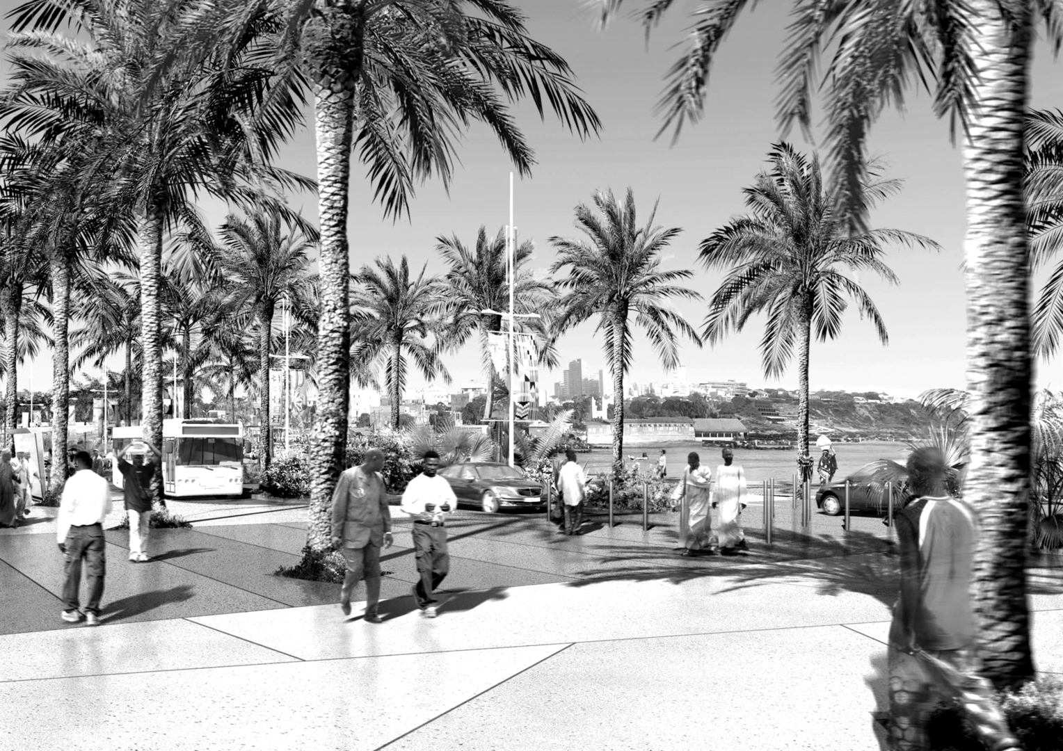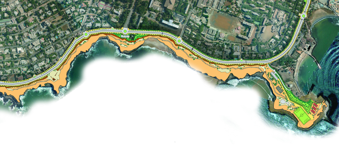 L’insertion urbaine de la corniche doit traduire le passage progressif de l’ordonnancement de la ville à la souplesse du littoral. Transition de la rigueur ordonnancée et maîtrisée vers une