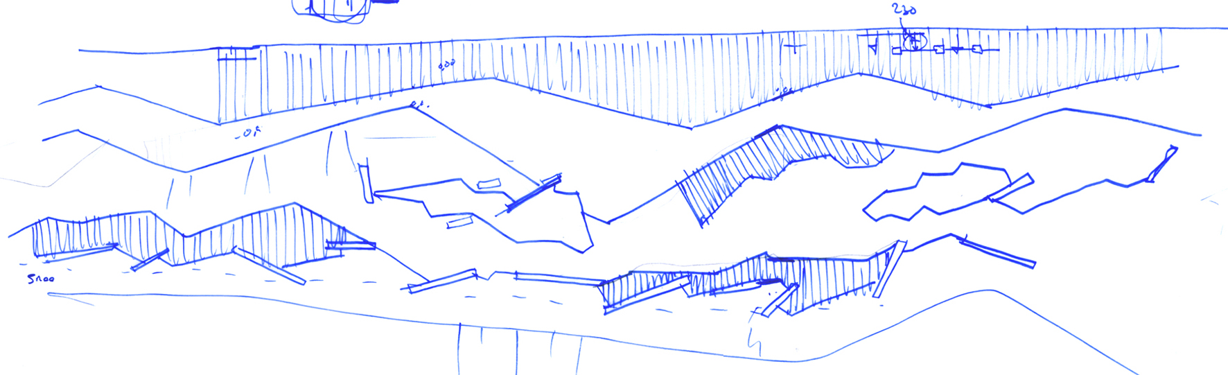 Le promeneur quant à lui ou le cycliste, qui utiliseront l’aménagement dans l’épaisseur, découvriront une réponse originale entièrement issue du site, jouant avec ses irrégularités et ses diversités