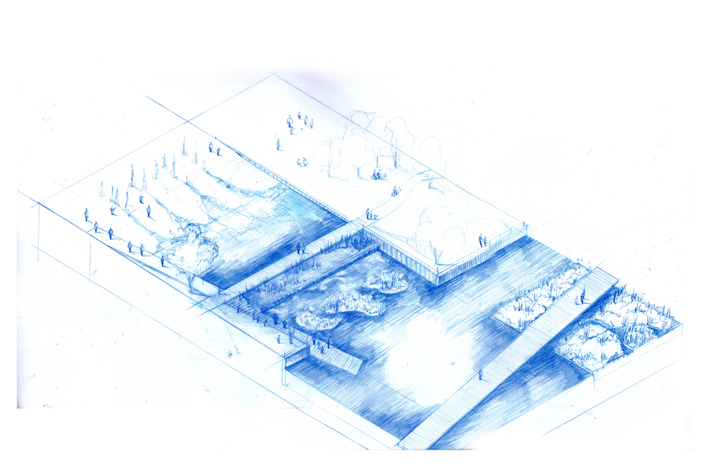 La structure, le squelette ainsi défini, permettra dans le temps de soutenir aisément la fragilité et la spontanéité des espaces ‘naturels’ que nous retrouverons sur le parc.