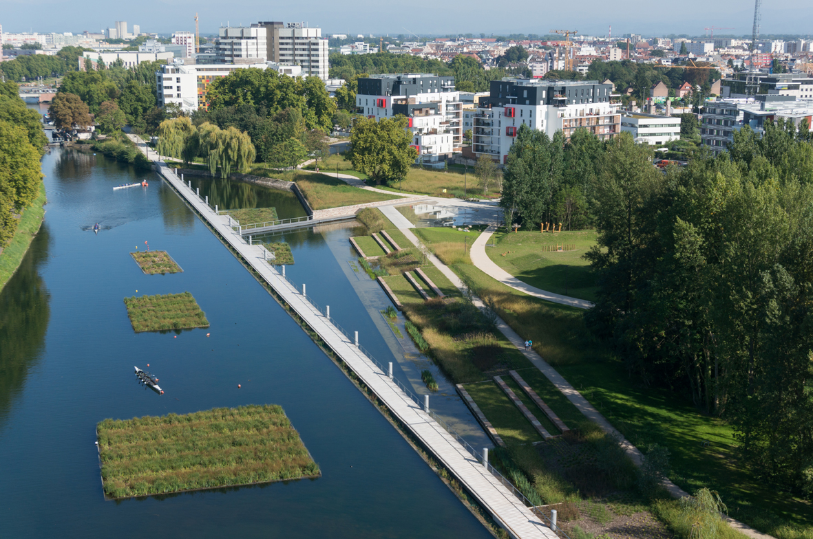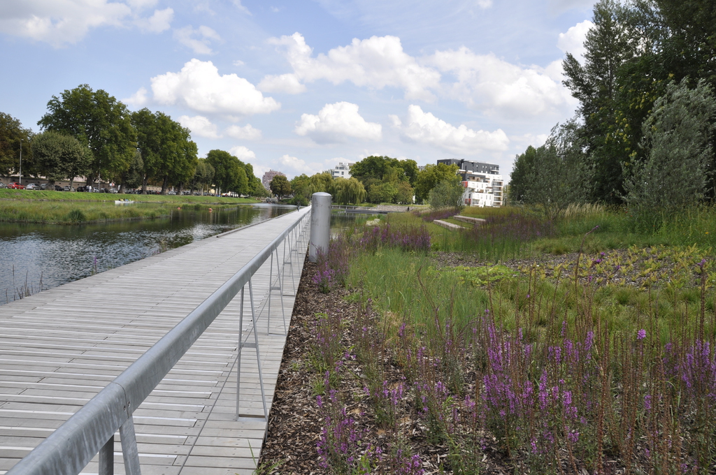 A proximité immédiate de la plaine sportive et jusqu’aux jardins d’expression, le contact à l’eau est retrouvé grâce aux cheminements sur pontons, aux accès à l’eau, aux encorbellements et autre platelages au fil de l’eau.