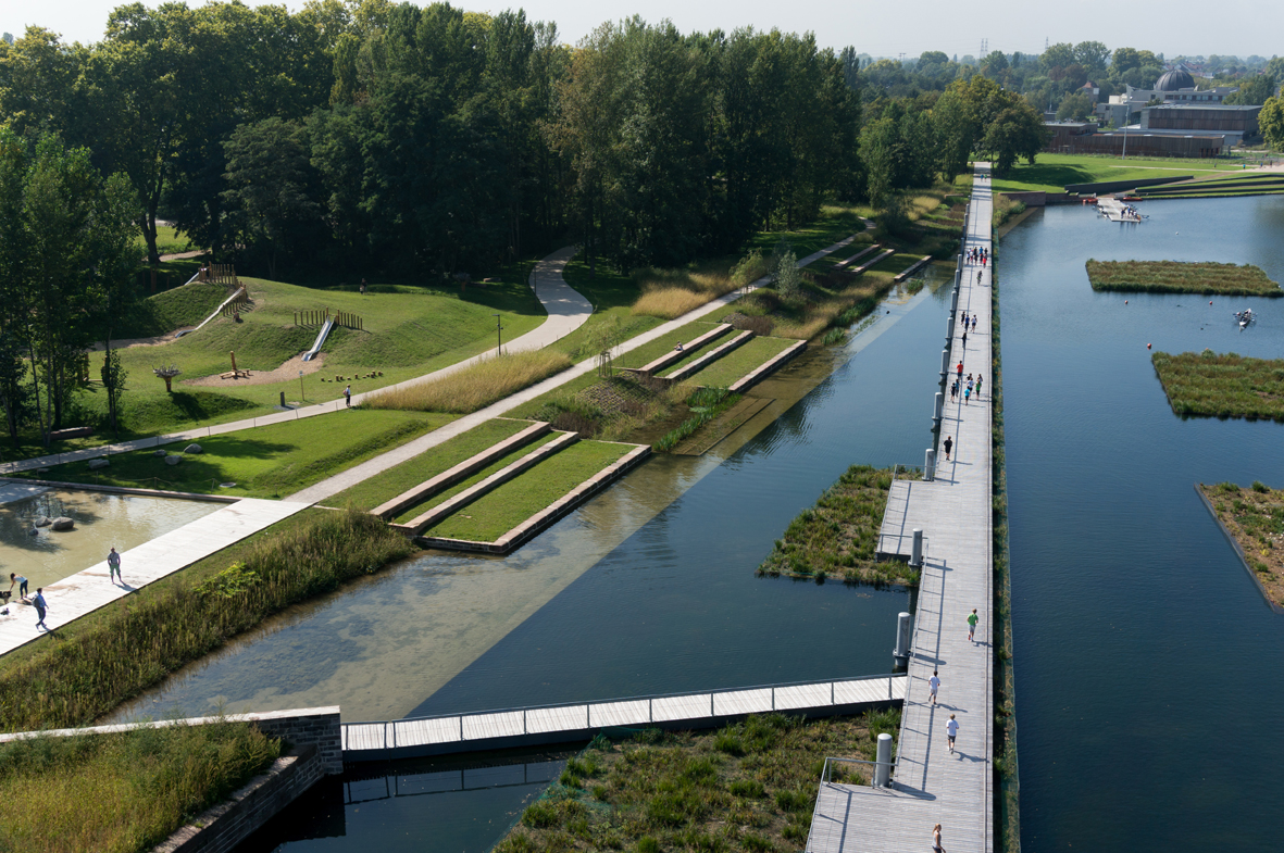 Un peu plus au Sud, encore sur les berges, le parc et le bassin se mélangent, formant des jardins humides, formidables espaces à vivre, à parcourir et à voir.