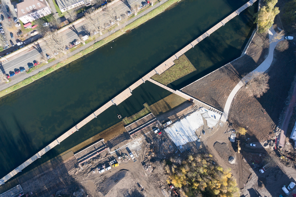 Le trait d’union (axe fil conducteur) devient, à cet endroit presque une promenade ‘sur l’eau’.